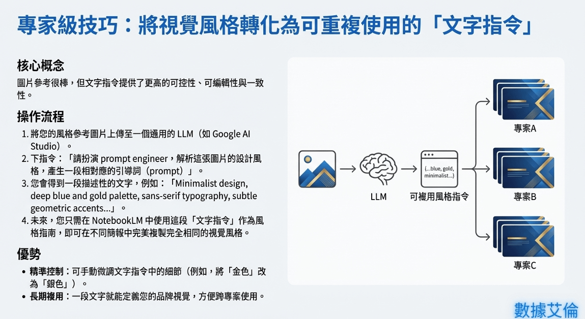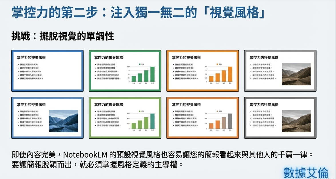 您可以透過上傳範例圖片,引導 NotebookLM 採用特定的視覺風格。