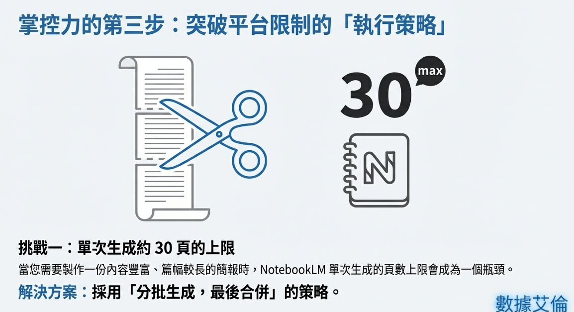 為了確保 NotebookLM 嚴格按照您的想法生成內容,請勿直接生成簡報,而是先要求它製作大綱。
